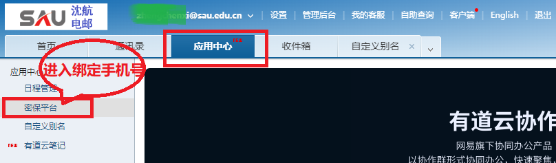 下图所示为登录邮箱后,设置绑定手机号方式。